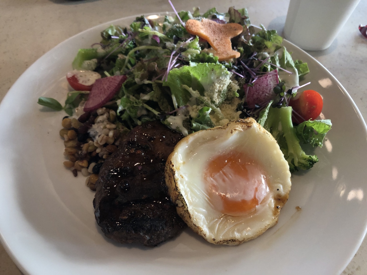 おいしいハンバーグ、サラダをいただきました、飛行機乗る前に、ちょっとした軽食の最適でした、お勧めします