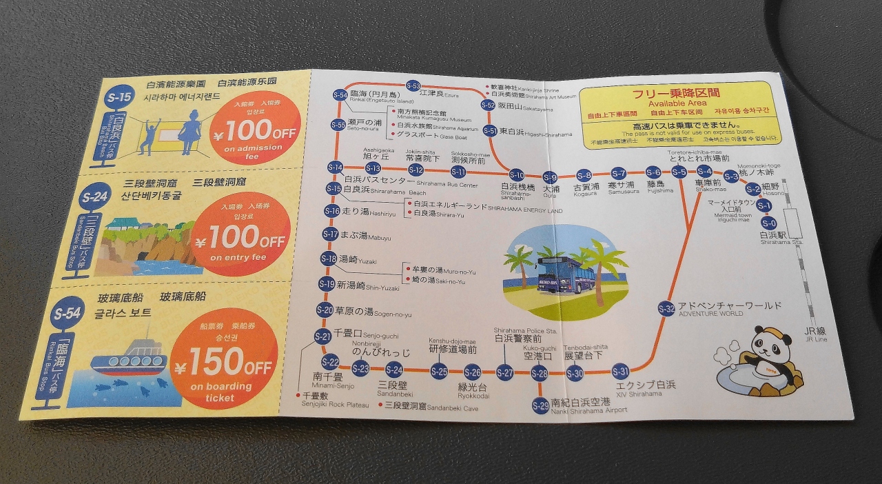 観光するにはとくとくフリー券がお得です、お得なクーポンも付いてます。