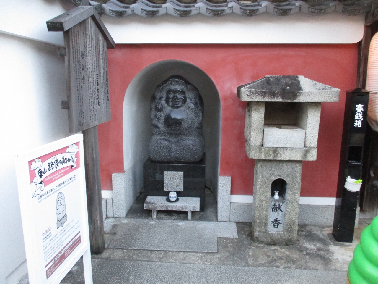 三面大黒天はねねの小径沿いにあります。豊臣秀吉が持ち歩いた、通称、世守り本尊というような説明がありました。出世することに大きな関心を抱いていた秀吉が持っていた、3つの神様を同時に拝むことができるという便利で、かつ、合理的なものです。
