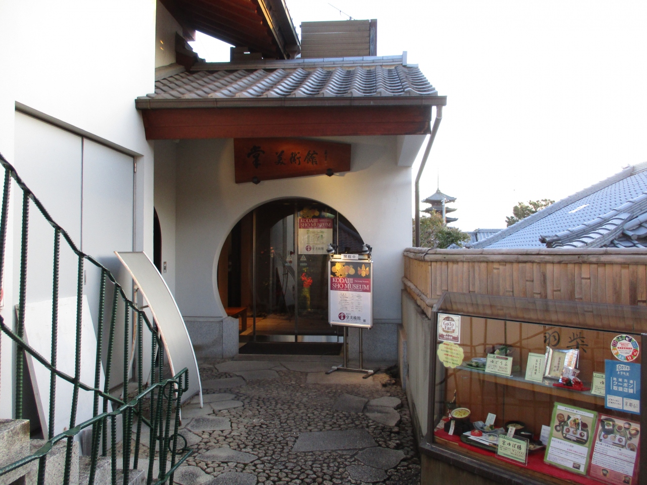 高台寺、圓徳院とのセット券で入館しました。場所は圓徳院の出口の前のビルの2階にあり、建物の間の細い階段を上った所に入口があります。少し分かりづらい場所でした。館内は2部屋しかなくとても小さな美術館でした。主に高台寺の寺宝の展示をされているようでした。