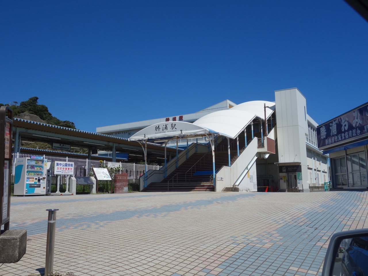 JR外房線のきれいな駅です。比較的大きい。房総半島をJRで一周することが夢でしたが,かなわずにすぎていっています。鉄道ファンには外房総は遠い夢の地。そんな時代でした。ああ,昭和は遠くなりにけり。ともあれ,勝浦のベースです。
