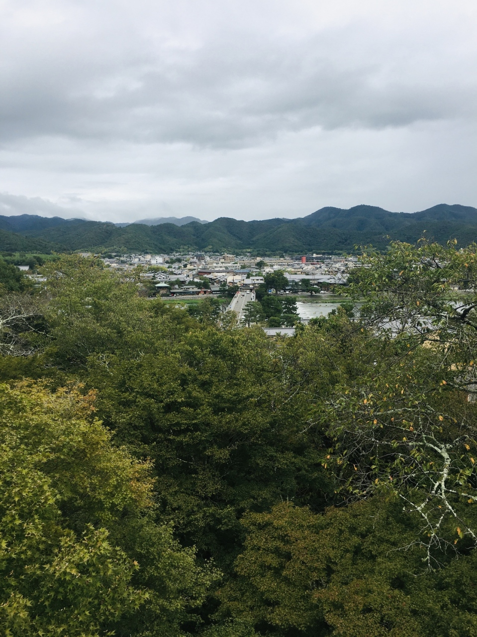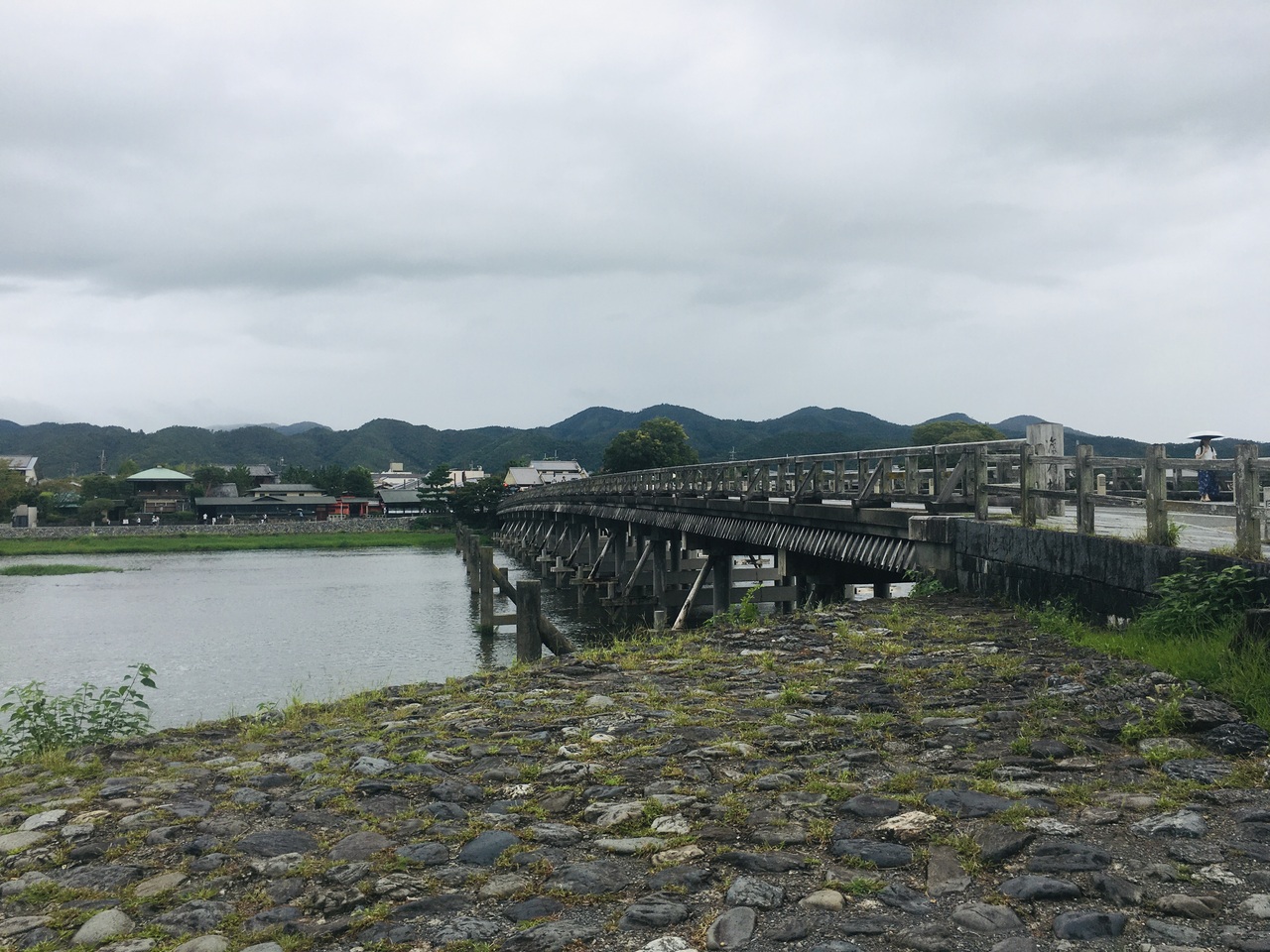 高台にある法輪寺から嵐山全景が小さく見えました。嵐山公園、渡月橋を渡ると嵐山の中心部で、食べ物屋等が立ち並び、大きな天龍寺がありました。朝方に行ったので人でごった返してはいませんでしたが欧米系の外国人が多くいました。