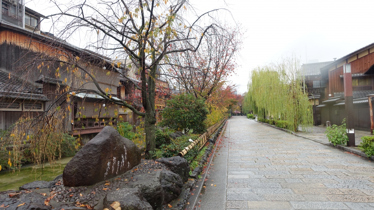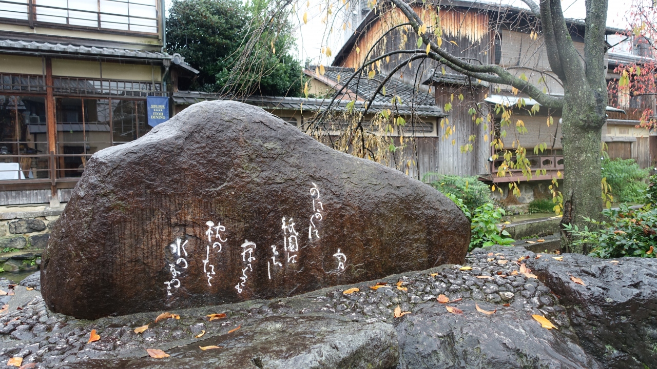 祇園白川の中ほどに祇園をこよなく愛した吉井勇の歌碑がある。