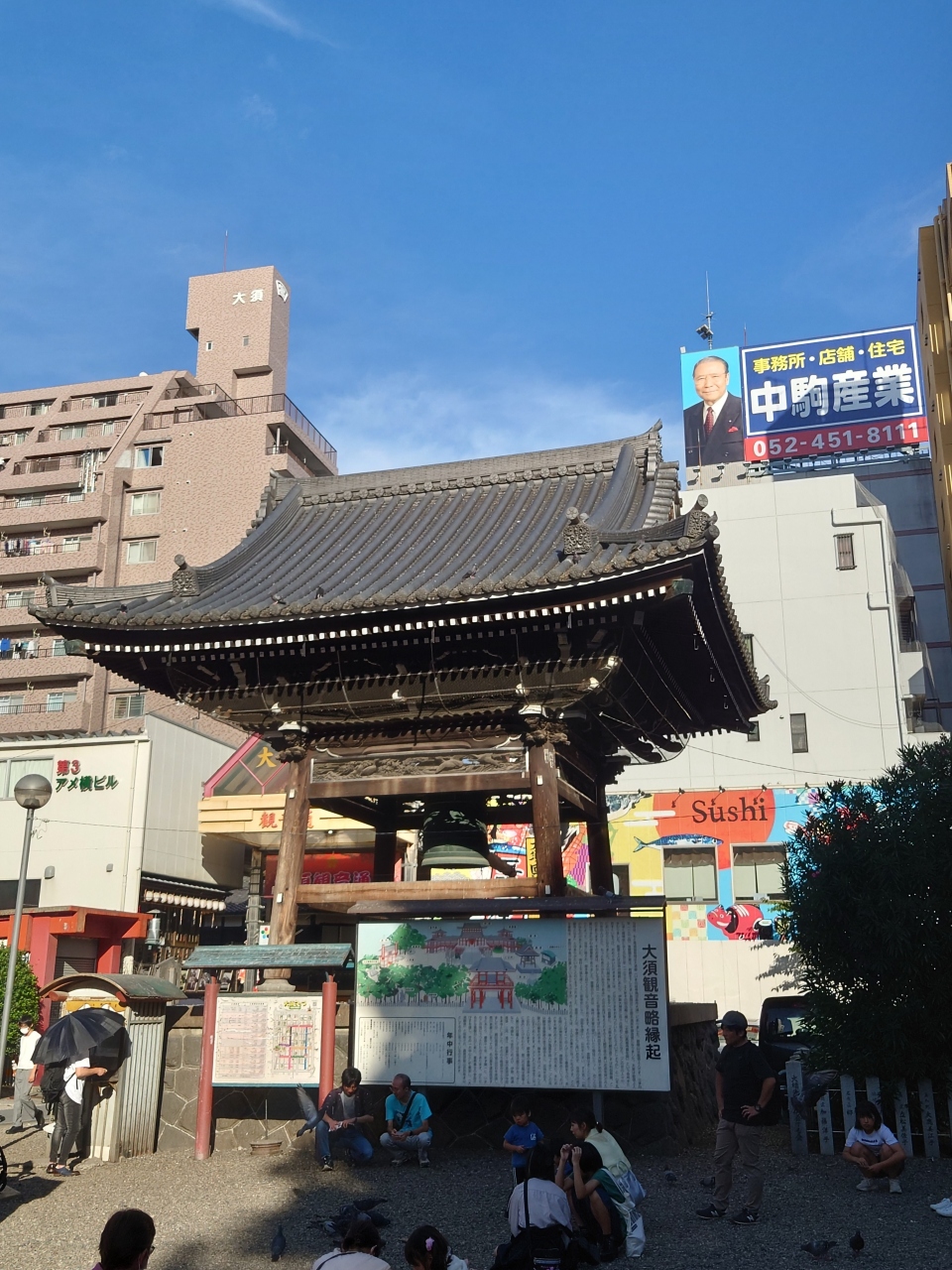 大須観音駅からすぐです。アーケード商店街に続く賑わいはここから始まってました。外国からの観光客もいっぱいいました。境内はそれほど広くないですが、建物や鐘楼ははかなり立派なものでした。鳩がたくさんいました。