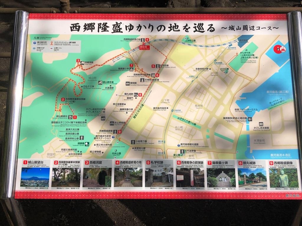 「西郷隆盛終焉の地(南洲翁終焉之地)」は、少し分かりにくい場所にあります。バスの運転手さんが丁寧に説明してくれたので分かりましたが、石碑や案内板がなければただの小さな広場にしか思えません。「西郷隆盛」が最後の5日間を過ごした「西郷洞窟」から東へ坂を下ったところにあります。そして、薩軍の英霊を祀った「南洲神社」や「南洲墓地」はそこから東北東へ 400~500mのところにあります。