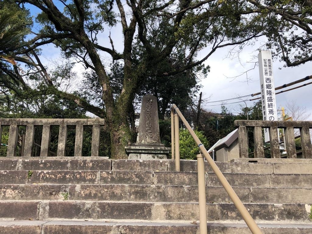 明治政府軍に追い込まれ西郷隆盛が自害した場所です。