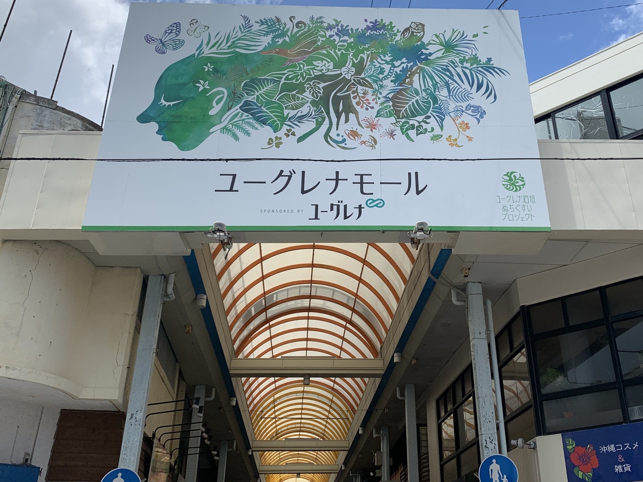 石垣島のショッピングモール。お土産屋さんが沢山ならんでて近くには飲食店も多いため賑わっています。屋根がついているので日差しがきつい石垣島ではクールダウンできるスポットにもなっています。お菓子も服もお酒も雑貨もここに来れば大体何でもそろうので、必ず立ち寄ることをオススメします。