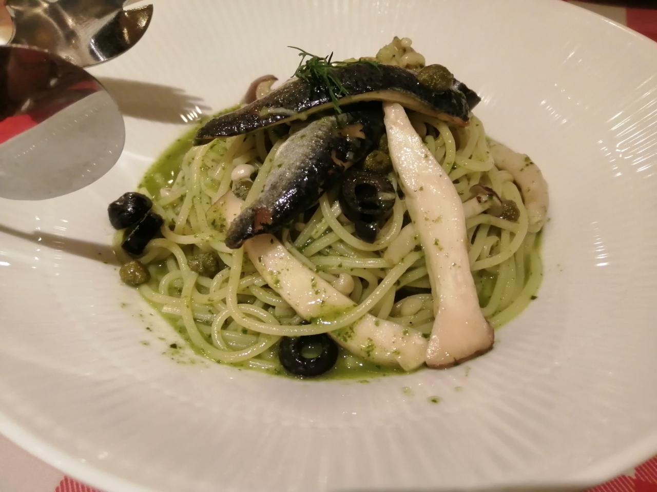 席同志は近すぎず落ち着けるし、メニューは場所の割にはお手頃で、2人でワインボトル1本開けて、他にもいろいろ頼んでお腹一杯になりましたが、¥4,000弱でした。味も十分満足できるレベルでした。