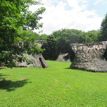尖石縄文考古館隣に保存されている、縄文時代中期の遺跡です。現在、遺跡は芝生が植えられ公園のようになっていて、存在したであろう縄文集落の竪穴住居が復元されて建っています。遺跡発掘中に出土した土器や石斧などは隣の考古館に展示されています。考古館が建つ尖石遺跡には復元された住居などはないため、住居が建つ与助尾根遺跡は遺跡らしさが感じられました。5000年から4000年前にムラが存在し、人々が生活していたことを考えるとロマンに満ち溢れている遺跡だと思います。
