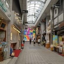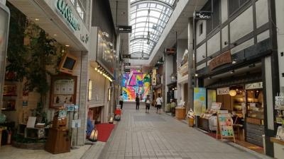 道後温泉駅から出てすぐのところにある商店街。お土産もの屋さんや、お食事処などが連なっていますが、どの店も接客がいまいちでした。