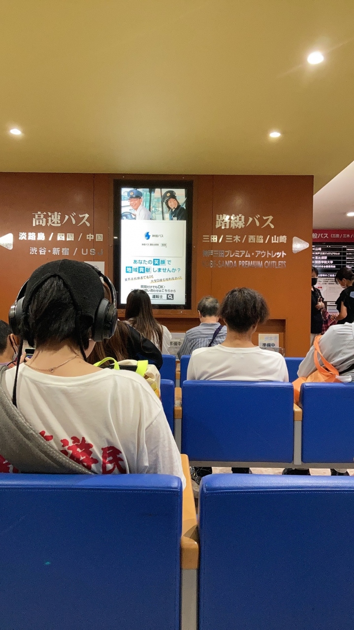 土地勘のない場所で初高速バスはドキドキ。JRバス乗り場に間違えて行ってしまった(ーー;)。三ノ宮バスターミナルから滝野社まで利用。乗車準備ができたら掲示板に乗り場の番号が表示される。山﨑行き、予定時刻の5分前位に表示が出てSuicaタッチで無事乗車、乗客約10名。高速を出たり入ったりしながら若干早めに目的地到着。人生初の高速バス体験はわくわくタイムでした。