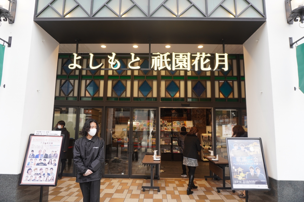 よしもと祇園花月は、祇園の交差点からすぐの東大路沿い。大阪の吉本ほどの規模はないし、京都で吉本ってちょっと違和感もあったのですが、少し覗いてみると入ってすぐに小さなグッズ売り場。人気芸人さんのキーホルダーやハンカチ、お菓子なんかもあって、なんだか心が和みました。