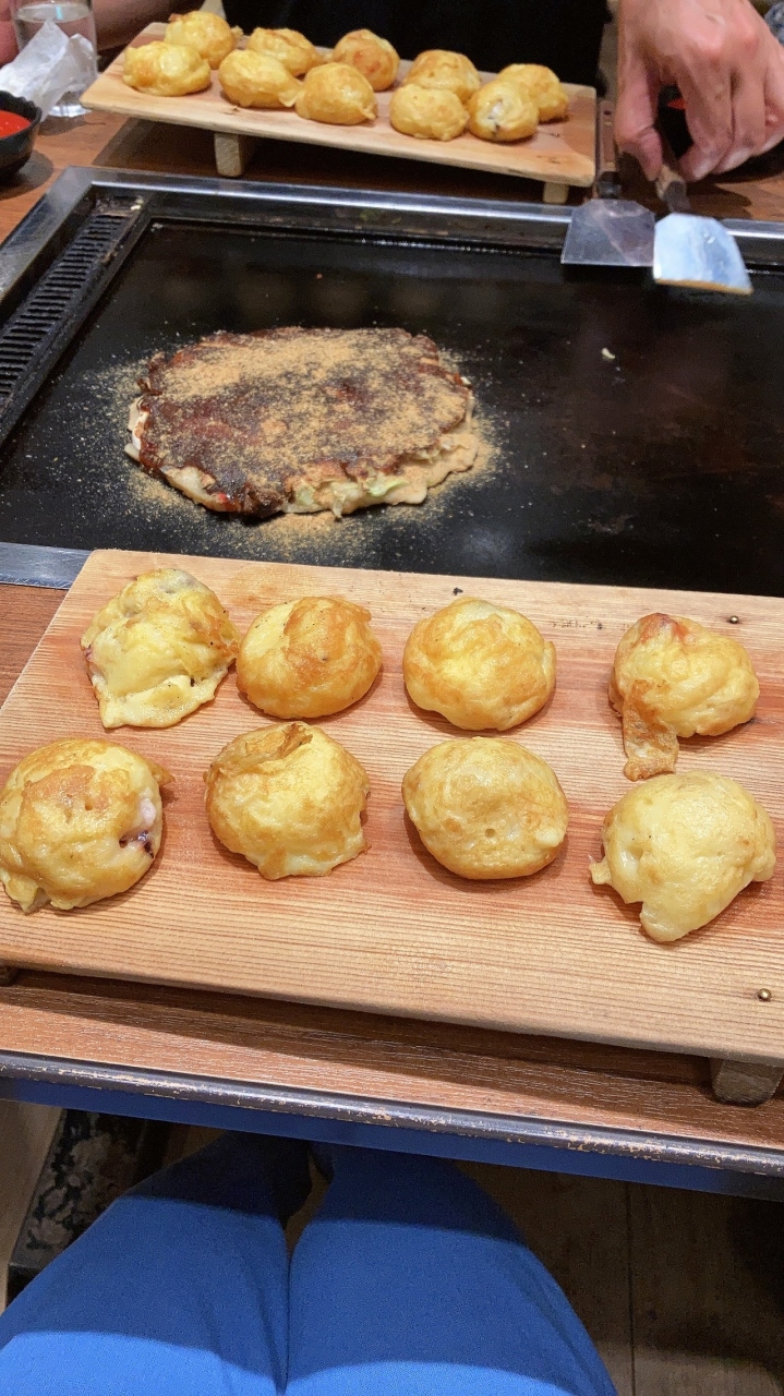 明石の玉子焼は人生で2回目。帰省時に連れて行ってもらいました。お好み焼きと玉子焼を注文。お好み焼きはすじコンを頼んだような。焼いてもらって鉄板に登場。おばちゃんが焼いてくれる玉子焼は、卵が絶妙なフワフワかげんの熟練の味。おいしかったわー。駅前です。また食べたい。