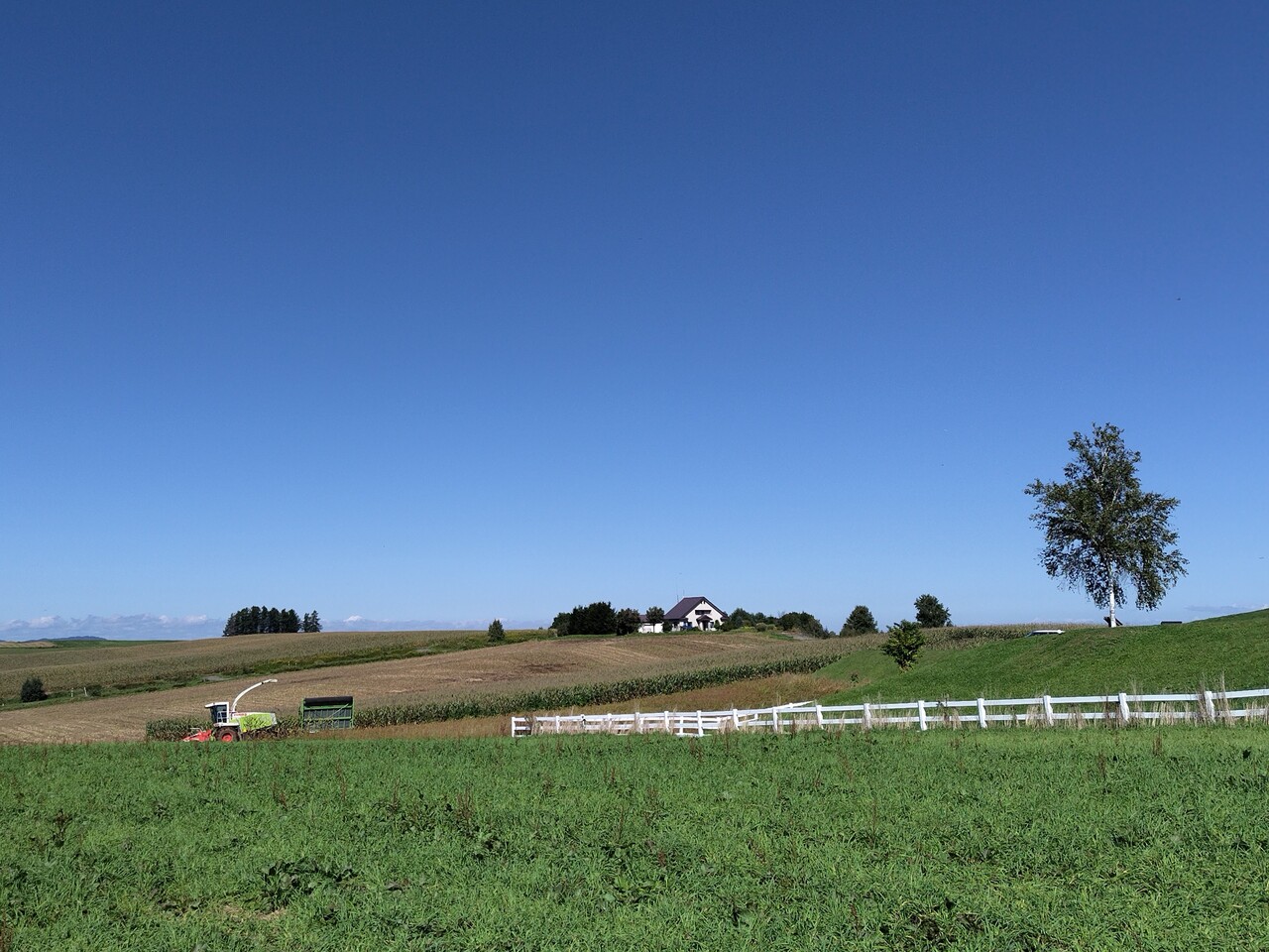 夏に来て、また秋にも来ました。季節によって、畑の雰囲気も変わり、いつ来てもいいですね。秋は畑のパッチワークがくっきりしたり、収穫をしていたりと、なかなかいい風景です。夕焼けもきれいになってくるし、夕方もおすすめです。