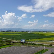 車がなく、公共交通機関で田んぼアートを見に行くのに便利です。田んぼアートの二つの会場間はシャトルバスもあります。