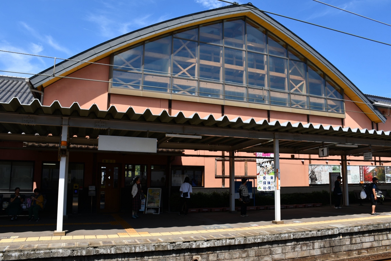 足立美術館に行くために、安来駅で降りました。この駅で降りる観光客は十中八九、足立美術館がお目当てと見受けました。安来駅は特急も停まり、お隣が米子駅というのでそれなりに列車の本数もあります。観光案内所と売店が併設されています。