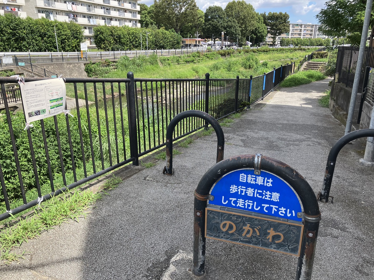 雑貨やカフェを運営する手紙舎のイベントがつつじが丘にある団地広場で開催されたので参加しました。広場のすぐ裏手に野川が流れていたので、イベント後に川沿いを歩きました。野川は多摩川の支流のひとつだそうです。夏だったので草が茂っていましたが、暑い中でもランニングをする人たちもいました。