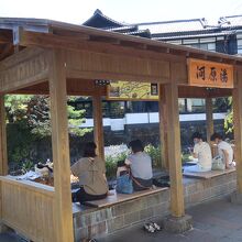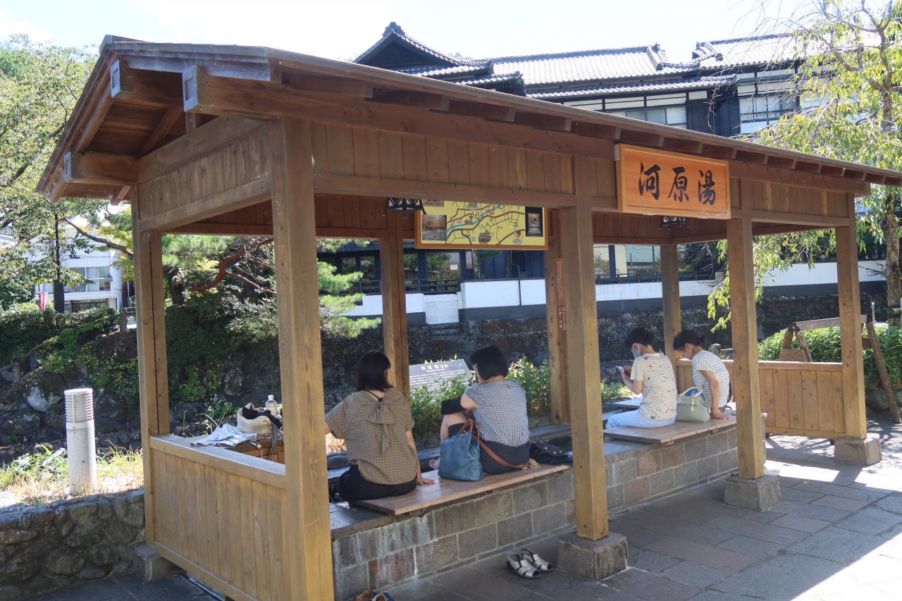 修善寺温泉の独鈷の湯のそばにある足湯が河原湯です。独鈷の湯のある桂川を見ながら足湯に浸かることが出来ます。大きな足湯ではないため私が訪れた時は先客が4人おり、結構窮屈に感じました。また夏場は暑いので、長湯は出来ないですね。