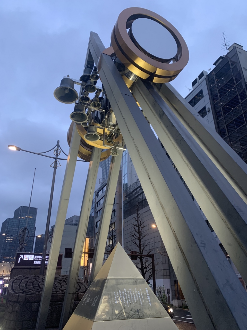 東京駅から八重洲通りに出てすぐの中央分離帯にある大きな鐘です。