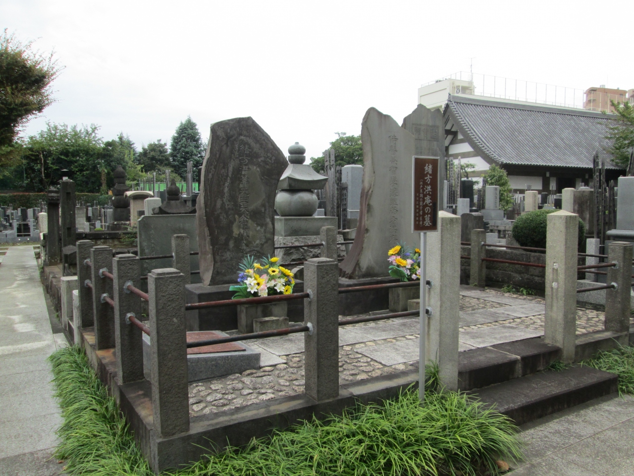 曹洞宗系単立寺院、創建は1596年、開山は桂岩和尚です。山門を通ると、正面に妻入りの本堂、墓地に廻ると萬霊堂、保存樹木イチョウ、緒方洪庵の墓、アララギ派の歌人岡麓の墓があります。寺院の本堂ですが、屋根の形状は兎も角として、私が見た寺院本堂の正面は平側が多かったと思いますが、高林寺の本堂は切妻屋根の妻側が正面になっており、大変印象に残りました。歴上人物の墓もあり、訪れる価値のあるお寺でした