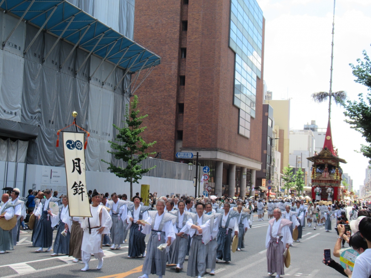 前祭(さきまつり)は7月17日の午前9時、四条烏丸の交差点から、長刀鉾を先頭に23基の山鉾が順番に、四条通、河原町通、御池通、新町通のルートを通っていきます。