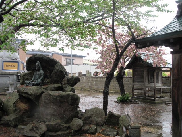 津軽半島の金木の観光で訪問したお寺の一つです。太宰治にもかかわるお寺です。小説の「思ひ出」に登場するお寺で、太宰治が小さかった頃に乳母さんに連れて行ってもらった場所。地獄の掛け軸があるお寺ですが、残念ながらコロナのため建物内は見られませんでした。境内には桜も咲いていました。