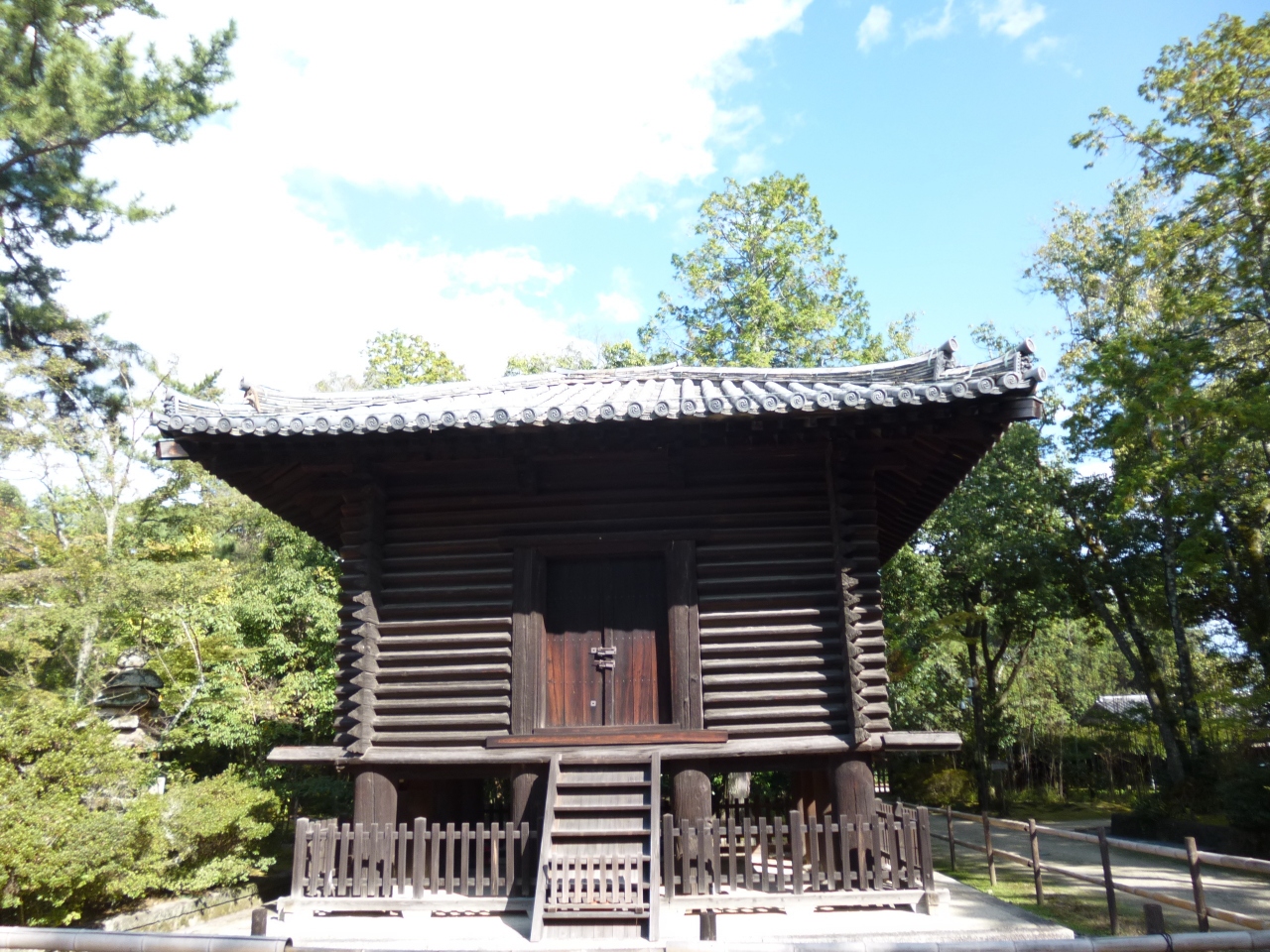 薬師寺を見学した後すぐ北にある唐招提寺へ向かいました。南大門をくぐるとなだらかな下り坂の向こうに、金堂が見えます。横になだらかに広がる美し形の屋根の建物です。8世紀後半の創建時の姿を残しているそうです。金堂東側には唐招提寺で最も古い建造物であり、日本最古の校倉といわれる経蔵もあり、見どころの多いお寺です。