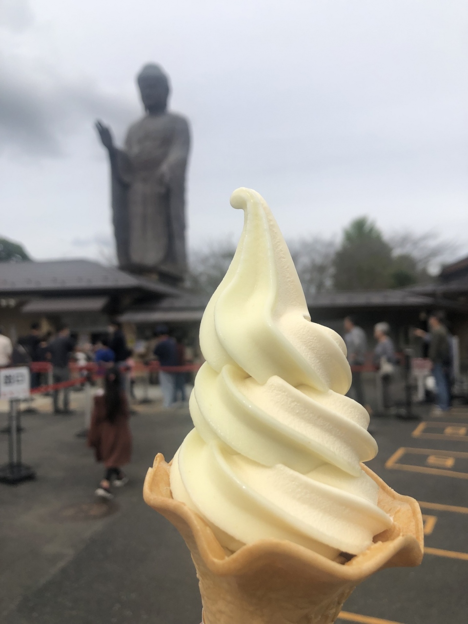 が、なかなか良いのは、駐車場は大きくて無料だし、入場料まえの「仲見世」の短い通りでは、お土産は見てそぞろ歩けるし、周辺マップもあるし、ソフトクリームもある。大仏様だって十分大きく写真におさめることが出来る。