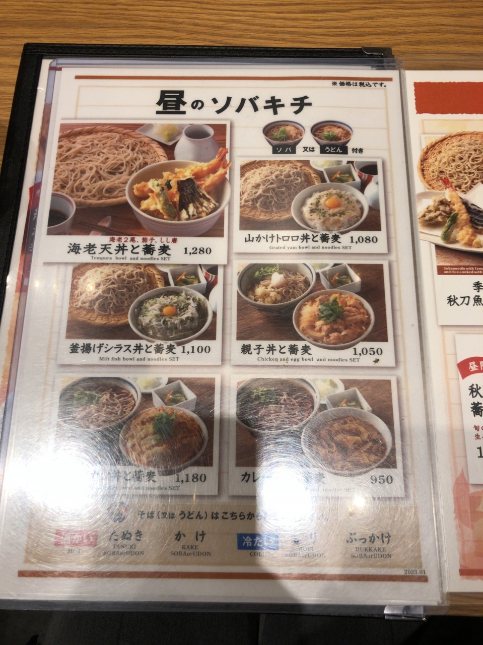 ランチタイムはお蕎麦プラス丼系の組み合わせで、お得な価格になっています。