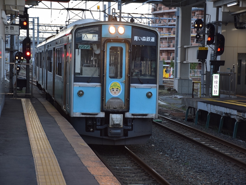 言うまでもなく青い森鉄道は東北新幹線の並行在来線であるが、貨物ひしめく東北本線の遺産を引き継いだため車輛こそ何の変哲もない東北管内の標準交流車輛ではあるが、直線区間と駅間距離が長いため各駅停車こそあれ評定速度が百キロ台の新快速に肉薄する高速走行を身上としている。