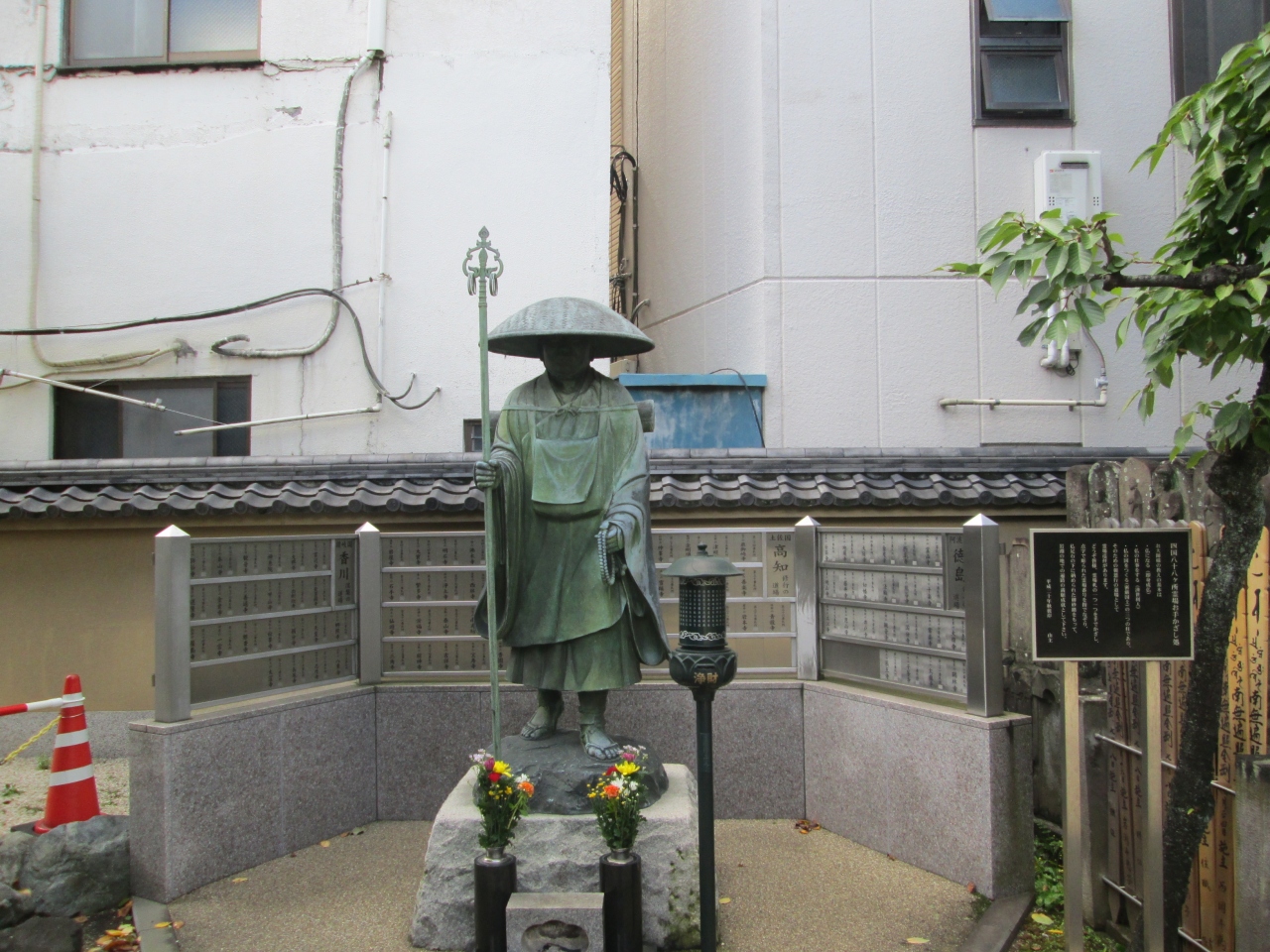 真言宗智山派の一寺、創建は1655年、本尊は薬師如来像です。門前に幸福地蔵がある。山門を潜ると、岩淵天神、不動明が安置されている不動堂、本堂、弘法大師像、四国八十八ケ所霊場御手かざし処、東久世通禧の歌碑、庚申塔があります。大師像の後ろにある四国八十八ケ所霊場御手かざし処は、各八十八ケ寺に手をかざし、点字で彫られた霊場番号を一つ一つ指でなぞり、お砂踏み場をもって、八十八ケ寺遍路の満願成就になるそうです。一寺の山内に88ケ寺の地蔵を配してミニ八十八ケ寺巡りをするというお寺に行ったことはありますが、指で八十八ケ寺巡りをするのは初めてです。どちらにしても、四国まで足を延ばさなくても満願成就できるとは、有難いことです