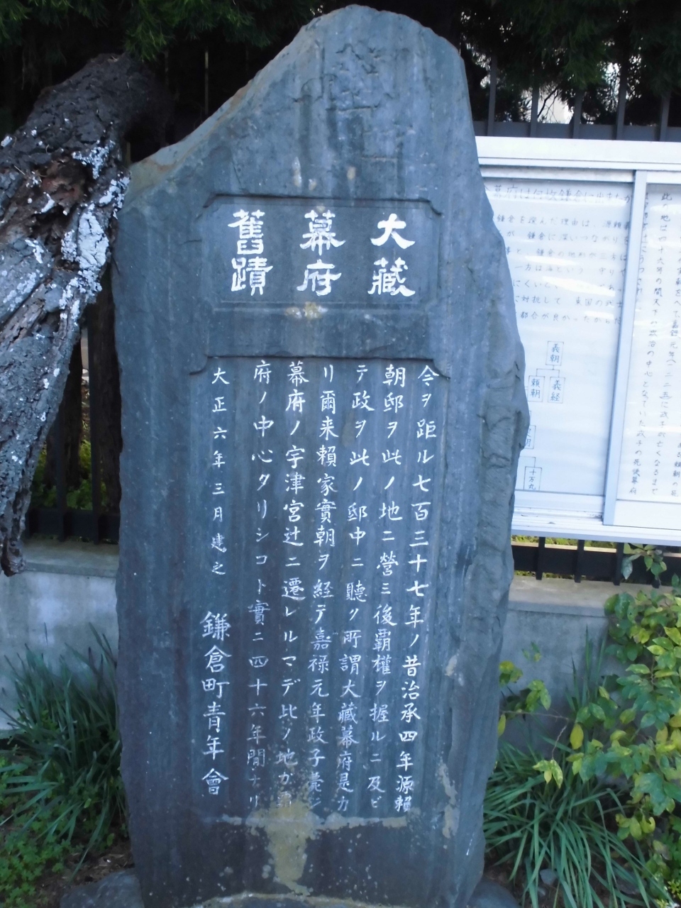鎌倉と言えば鎌倉幕府の所在地です。この位置は初代幕府のある場所でした。これは頼朝の家があったことによるものです。今は石碑が残るだけですが、100年以上前の石碑であるにもかかわらず書かれている文字は今でも読めました。
