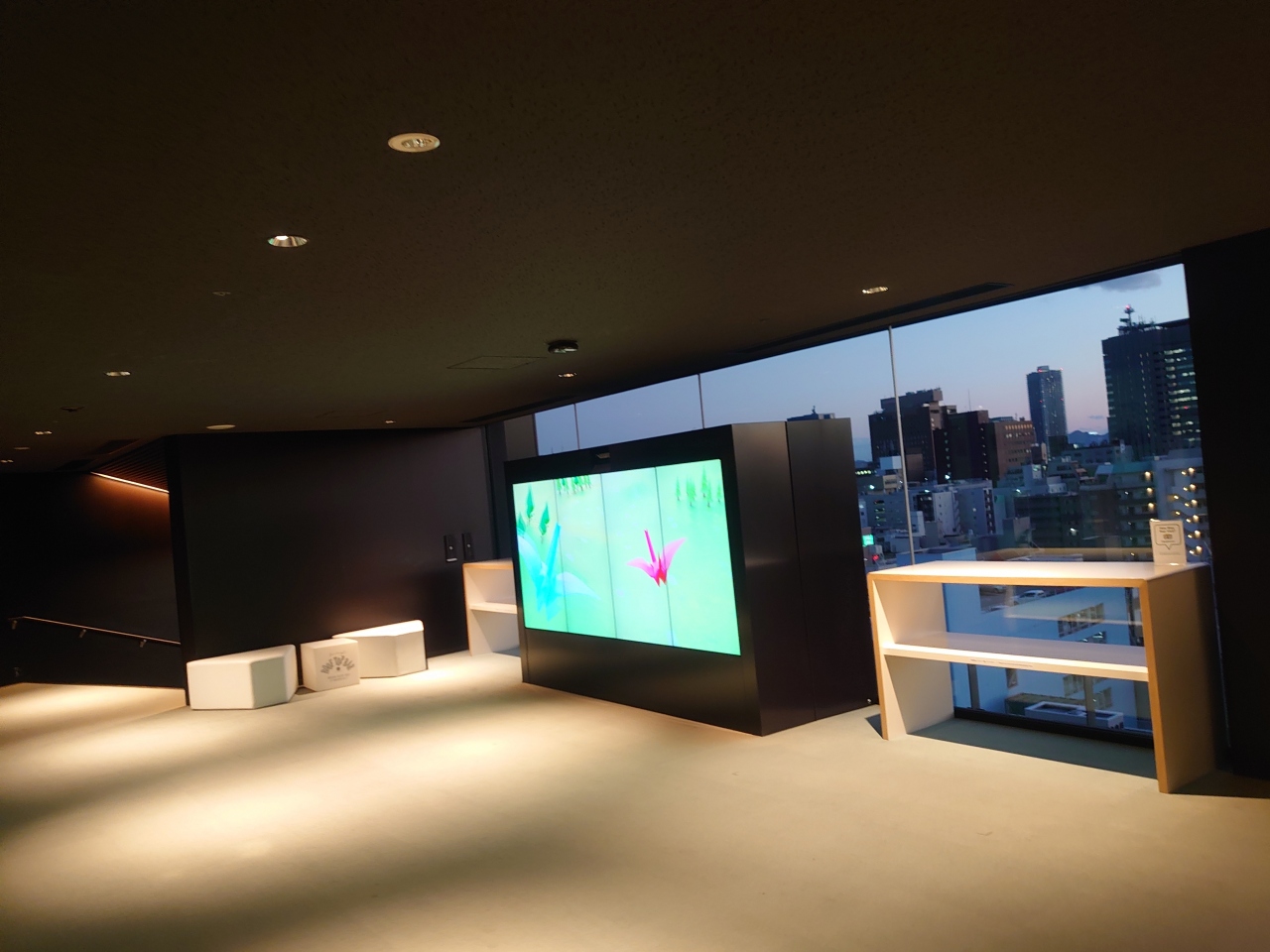 展望階からひとつ下に外壁から見ると変な感じですが、巨大がボックスがガラスで出来ていておりづるの壁「みんなで作ろう(折ろう)」ですが、一人1枚折り紙買う感じです。