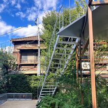 花屋とつながっている茶屋は趣きがある木造2階建て