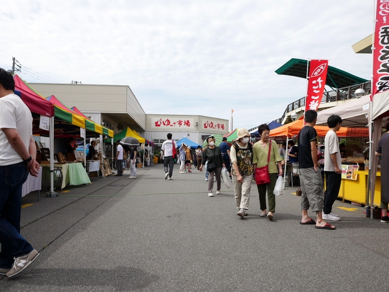 「道の駅ゆ~さ浅虫」の名称のみちの駅、5階には展望浴場「はだか湯」がある。向かいの平屋建てには「ゆ〜さ市場」があり、こちらは生鮮など中心に売られており、途中農家の方が立ち寄って補充商品を持込んでいたので鮮度はよい。また、出店もたくさん出ており、ちょっとした買い食いもできる。広い駐車場は立地の良さから満車であったが、オートバイなら無理なく停められた。