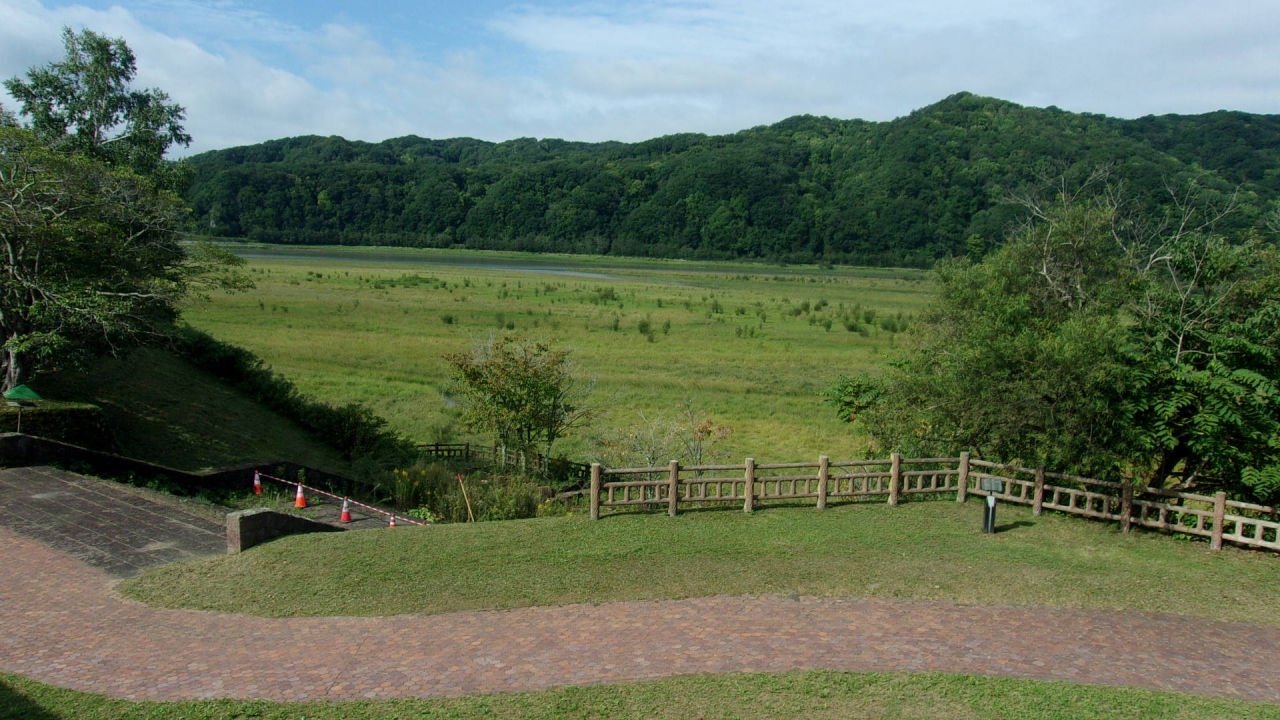 ダム湖といっても、夏は水位を半分に落としているそうで、湖面が堆砂で埋まって大草原になっている。