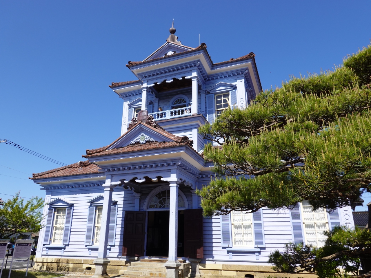 「旧鶴岡警察署」は、致道博物館内に建つ歴史的建築物のひとつです。水色の壁が印象的な西洋建築で、かつて警察署だったというのが信じられないお洒落な姿です。修学旅行の生徒さんたちの姿も見られましたが、致道博物館内でも最も人気を集めていたようでした。