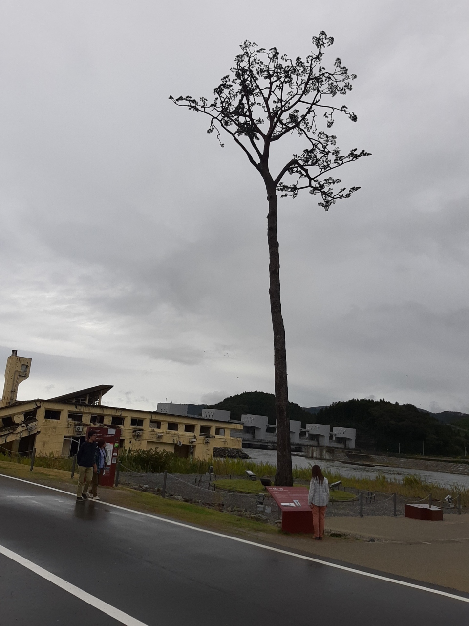 1896年の明治三陸地震津波、1933年の昭和三陸地震津波、1960年のチリ地震津波を生き延び、今回の大津波でも耐え抜き、「奇跡の一本松」と讃えらえた。しかし、震災の翌年2012に枯死したそうだ。現在はモニュメントとして保存されている。高さ27.5mもあるという大きな一本松は遠くからもよく見え、犠牲者を追悼し復興祈念公園のシンボルともなっている。
