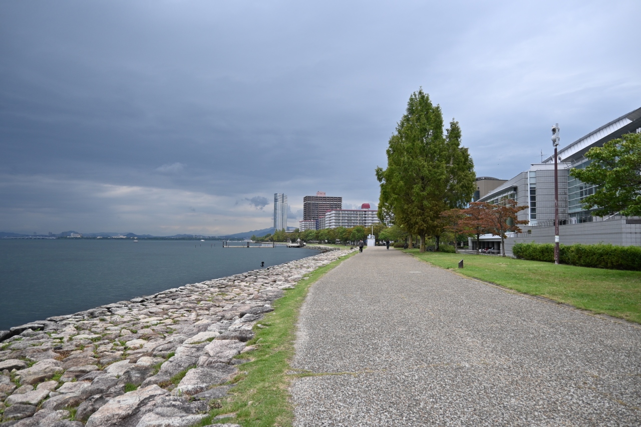 琵琶湖岸に沿ってずっと公園、ウォーキング歩道があって