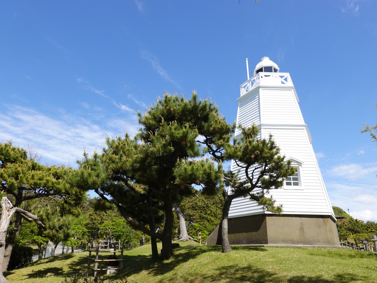 明治期の木造建築の灯台としては日本最古のもののひとつです。元来は対岸に造られたものが、日和山公園の一画に移築されました。小ぶりな灯台ですが、白亜のお洒落な外観をしており、海の青や空の青を背景にとても映えます。日和山公園での写真撮影において良いアクセントになりました。