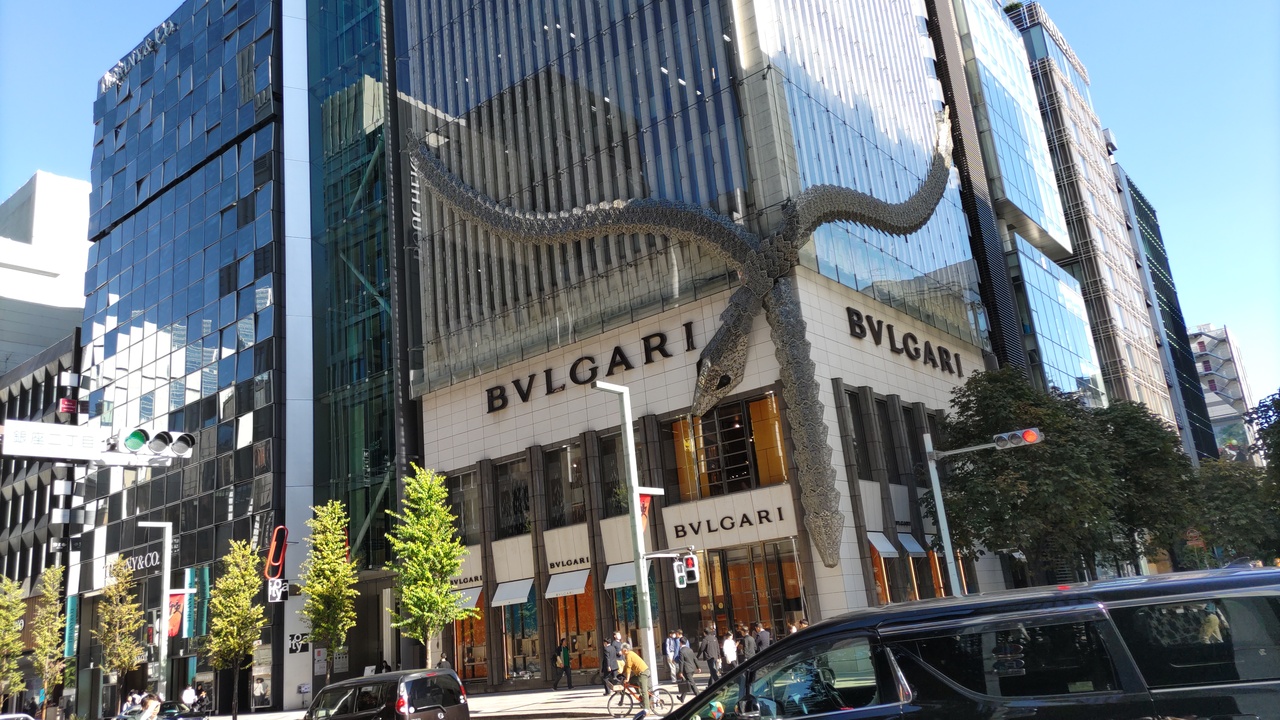 毎年、この時期になると銀座中央通りのブルガリのビルにスネークが飾られます。未だ、目の色は付いていませんが、目の色が国によっては違うらしく、以前、ニューヨークのブルガリと中央通りのブルガリの目の色が違いました。