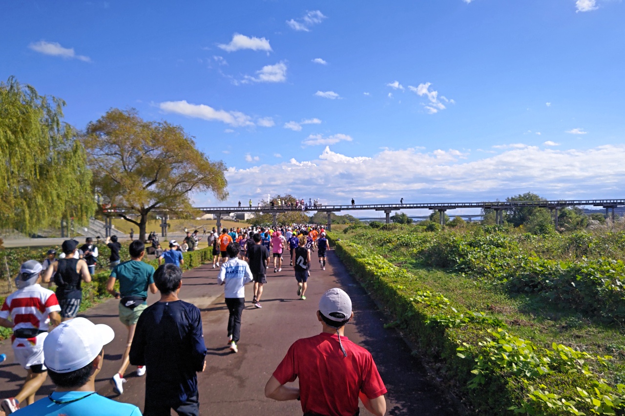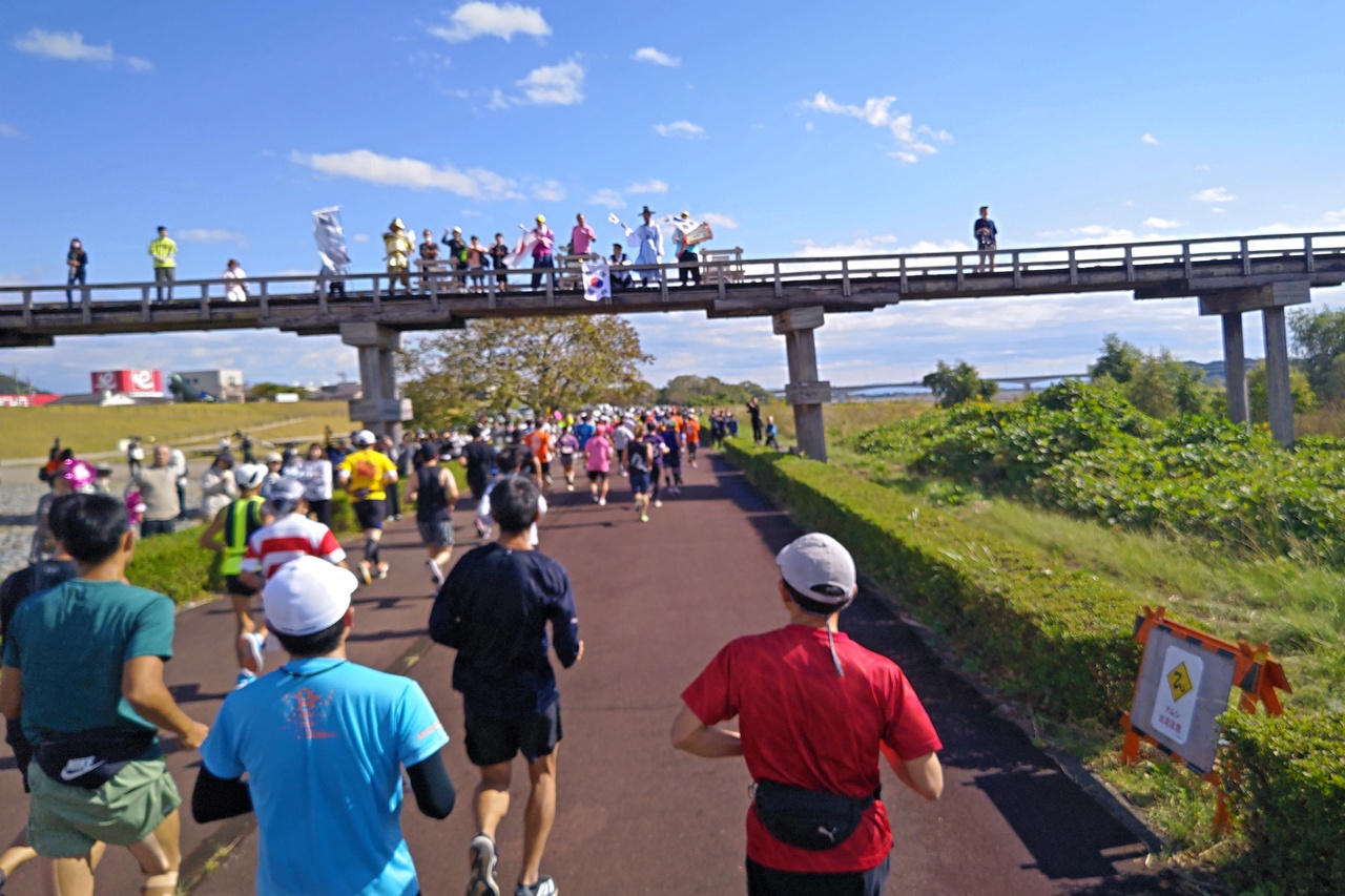 世界一登り長さを誇る木造歩道橋。大井川にかかります。しまだ大井川マラソンでマラソン専用道路リバティを走る際に、橋からの盛大な応援に心打たれました。次回は橋の上から大井川やリバティを眺めてみたいです。気持ち良さそう。