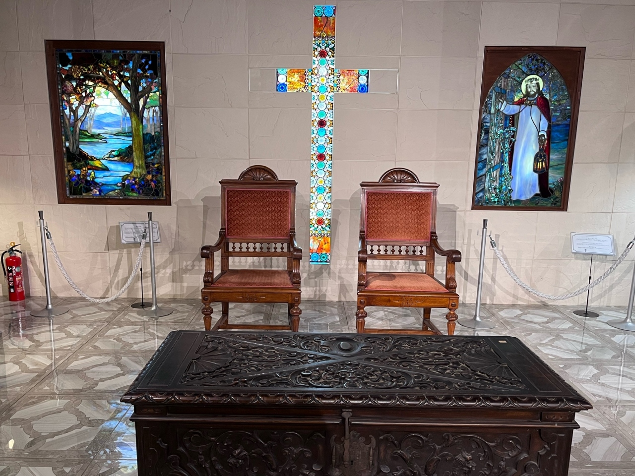 ティファニーミュージアムには120年前に作られたティファニーのテーブルランプなどのステンドグラス作品が70点ほど展示。