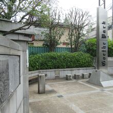 資料館向かいにはゲーテの年譜やファウストの一節が書かれた休憩施設が造られています