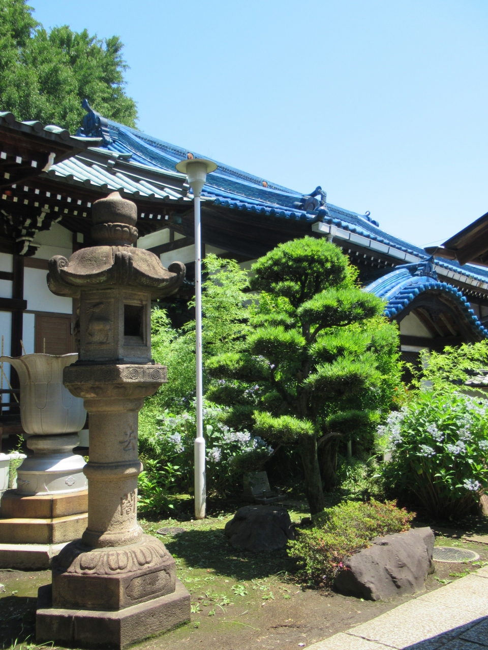客殿の青い瓦がきれいです