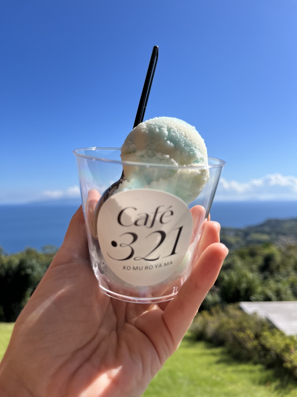 頂上に着くとカフェ321があり、お天気が良ければ新島や初島など、綺麗に見えます。カフェからの眺望もとても素敵でオススメです。
