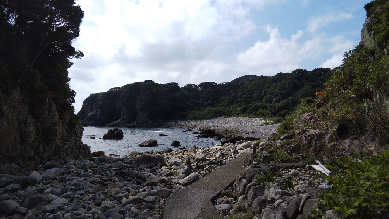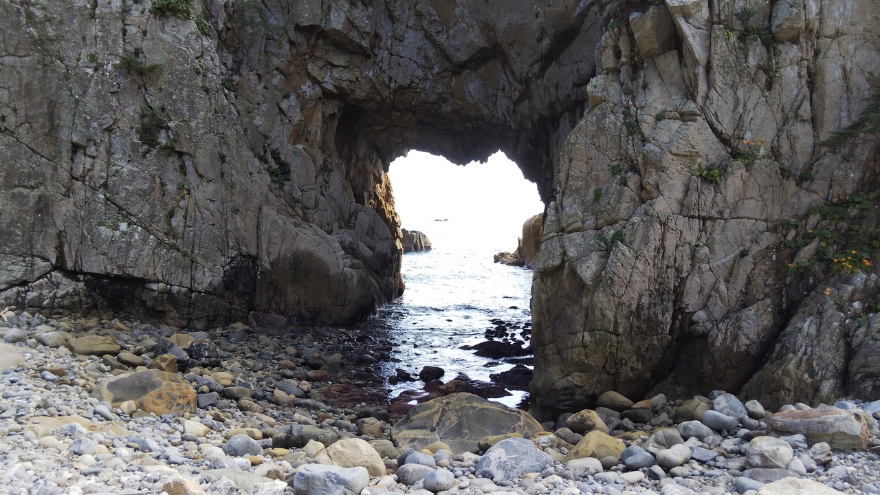 足摺岬周辺の遊歩道から海側に降りていくと、大きな岩のトンネル?がありました。