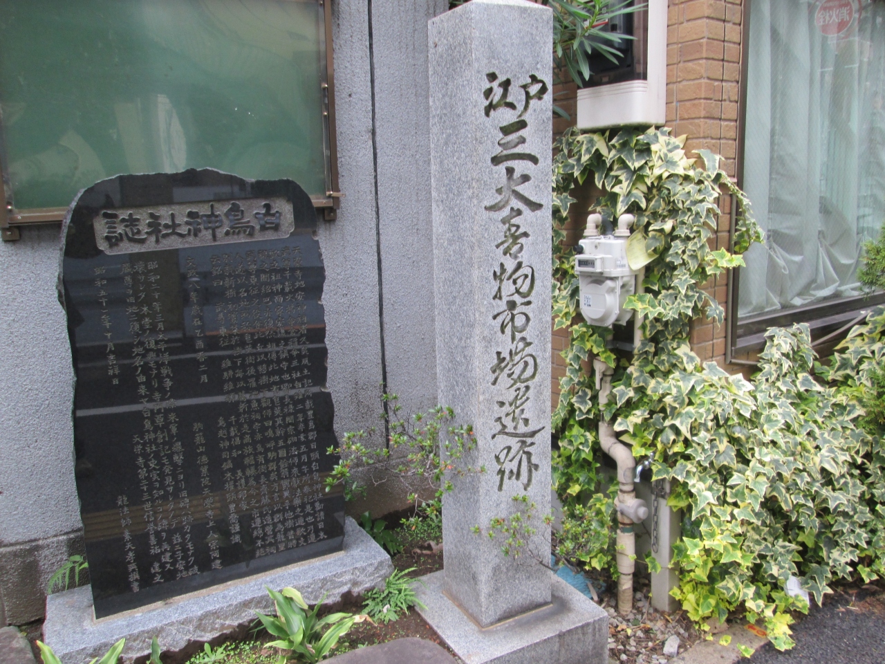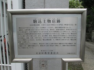 江戸時代この辺りは千住、神田と共に江戸三大市場の一つであり、幕府の御用市場であった。起源は十七世紀初頭、近郷で採れた野菜を求め、ここに人が集まったのが起こりとされる。天栄寺や高林寺の門前町であったとように思えます。昭和になって駒込青果市場となり、1937年に豊島区に移転した。昭和の10年頃まで、この当たりにヤッチャバがあったと思えないほど風景は変わってしまっているようで、当時をしのぶものは一つもありません。天栄寺門前に説明版と標柱が立つのみです