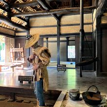 みの、フカグツなど昔の民具を身に付ける体験、 輪投げや竹ぽっくり、輪まわしなど昔の遊びも体験できますww