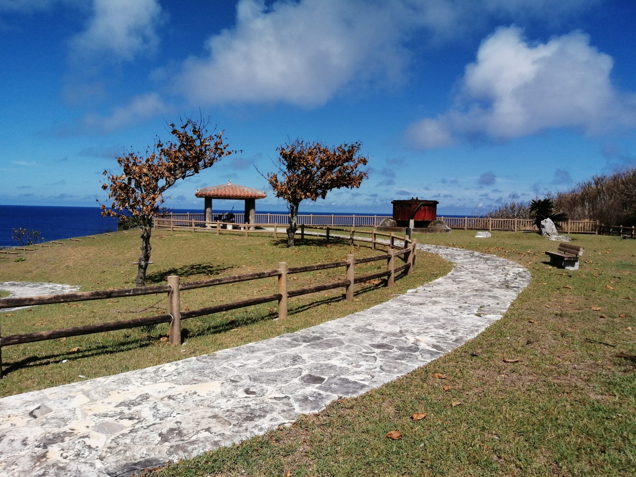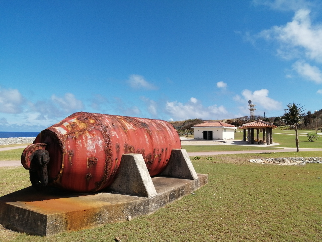 西港を望む高台にある公園です。広々とした開放感のあるとても気持ちのよい所です。トイレや東屋、フィットネス器具などがあります。またリン鉱山で使われた“遺物”がいくつか展示されています。南大東島を眺められるスポットでもあります。